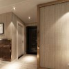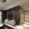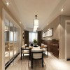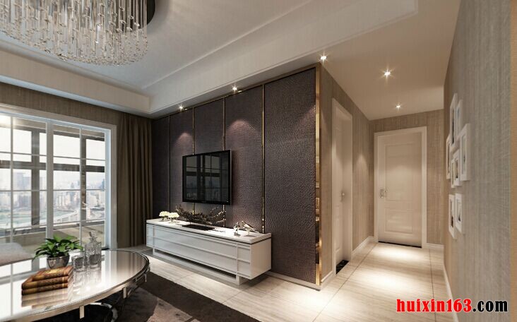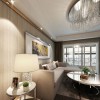 简约风的装修设计所展现的是一种清新、雅致并带有时尚范儿的感觉,在造型以及色彩的搭配上多以简单、直接的方式演绎出来,而且浅色系的色彩装饰,让空间的时尚感显得更加的突出、明显,在本案例客厅的装饰当中,平顶式的石膏板吊顶,搭配上一盏亮丽的水晶吊灯,让居室展现出一种个性却不张扬的美感,这也是简约风设计的一大特点所在,墙面四周射灯的安装更是营造出一种繁星闪烁的感觉,从而为空间铺上一层别样的美感,洁白的地砖与吊顶上下相互呼应,圆形的吊灯造型,从侧面更是突出业主富有一颗包容的心里,整体就给人带来一种舒适的感觉。