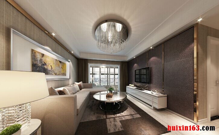 简约风的装修设计所展现的是一种清新、雅致并带有时尚范儿的感觉,在造型以及色彩的搭配上多以简单、直接的方式演绎出来,而且浅色系的色彩装饰,让空间的时尚感显得更加的突出、明显,在本案例客厅的装饰当中,平顶式的石膏板吊顶,搭配上一盏亮丽的水晶吊灯,让居室展现出一种个性却不张扬的美感,这也是简约风设计的一大特点所在,墙面四周射灯的安装更是营造出一种繁星闪烁的感觉,从而为空间铺上一层别样的美感,洁白的地砖与吊顶上下相互呼应,圆形的吊灯造型,从侧面更是突出业主富有一颗包容的心里,整体就给人带来一种舒适的感觉。