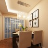 在本案例的设计当红,墙体采用乳胶漆,给人营造出一种浪漫、温馨的感觉,客厅采用平顶式的石膏板吊顶,搭配上一盏亮丽的水晶吊灯,整个吊顶没有过多的造型装饰,让空间显得比较干净整齐,实木铺设的地板,其色彩与吊顶呈鲜明的反差,两者相互遥相呼应,简单的家具添置,为空间展现出一种宽敞感,反观餐厅的设计,所占据的空间面积并不是很大,但却显得比较舒适雅致,一盏个性的吊灯,简单的餐桌椅摆放,个性的照片墙以及餐桌上一束绿植的添加摆放,都将餐厅应有的浪漫氛围展现得淋漓尽致,营造一个甜蜜得二人世界也是比较轻松得事情。 更多»推荐小区效果图