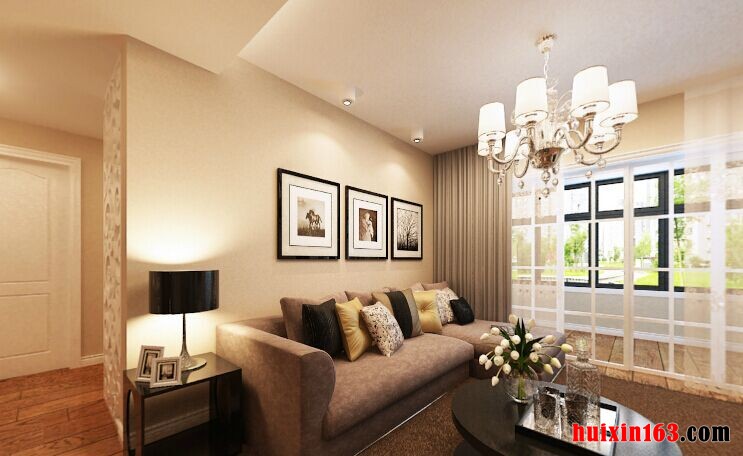 在本案例的设计当红,墙体采用乳胶漆,给人营造出一种浪漫、温馨的感觉,客厅采用平顶式的石膏板吊顶,搭配上一盏亮丽的水晶吊灯,整个吊顶没有过多的造型装饰,让空间显得比较干净整齐,实木铺设的地板,其色彩与吊顶呈鲜明的反差,两者相互遥相呼应,简单的家具添置,为空间展现出一种宽敞感,反观餐厅的设计,所占据的空间面积并不是很大,但却显得比较舒适雅致,一盏个性的吊灯,简单的餐桌椅摆放,个性的照片墙以及餐桌上一束绿植的添加摆放,都将餐厅应有的浪漫氛围展现得淋漓尽致,营造一个甜蜜得二人世界也是比较轻松得事情。