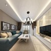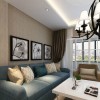 本案例得装修设计,采用现代简约的装修风格,在整体布局上没有多大的改变,但局部的变动所营造出来的效果也比较沁人心脾,在客厅的装饰当中,采用平顶式的石膏板吊顶,搭配上一盏个性霸气的铁艺吊灯,让空间显得比较时尚雅致,洁白的地砖与吊顶上下相互呼应,吊顶夹层内灯带的使用更是将空间营造得比较明亮透彻,墙面四周射灯的安装也有着一个锦上添花的效果,浅蓝色的沙发布艺添置,鲜明的色彩反差正好起到一个色彩的点缀效果,让空间不显得单调乏味,瓷砖铺贴的电视背景墙也展现出一种别样的风景,如果在适当的添置一些绿植,其装饰效果会更加完美。