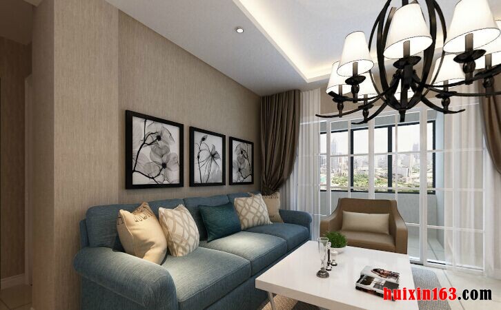 本案例得装修设计,采用现代简约的装修风格,在整体布局上没有多大的改变,但局部的变动所营造出来的效果也比较沁人心脾,在客厅的装饰当中,采用平顶式的石膏板吊顶,搭配上一盏个性霸气的铁艺吊灯,让空间显得比较时尚雅致,洁白的地砖与吊顶上下相互呼应,吊顶夹层内灯带的使用更是将空间营造得比较明亮透彻,墙面四周射灯的安装也有着一个锦上添花的效果,浅蓝色的沙发布艺添置,鲜明的色彩反差正好起到一个色彩的点缀效果,让空间不显得单调乏味,瓷砖铺贴的电视背景墙也展现出一种别样的风景,如果在适当的添置一些绿植,其装饰效果会更加完美。