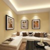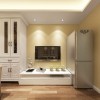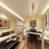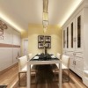 70平米的二居室,采用现代简约的装修风格,整个空间的居室面积并不是很大,通过设计师独具匠心的设计却显得比较时尚雅致,而且格局布置以及区域划分都比较合理,客厅所占据的面积并不大,满足该环境的基本需求,沙发靠墙布置,墙面以暖色系的壁纸铺贴,让简约的氛围彰显出一种温馨的效果,墙面三幅壁画的悬挂在狭窄的环境当中也能体会到一种艺术的气息,一侧就是餐厅的设计,中规中矩的布置虽然没有多大的看点,但一盏别致独特的吊灯却也将客厅的浪漫展现得淋漓尽致,储物柜基本都是以白色为主,大量的留白处理,也能营造出一种称心如意的居家环境。