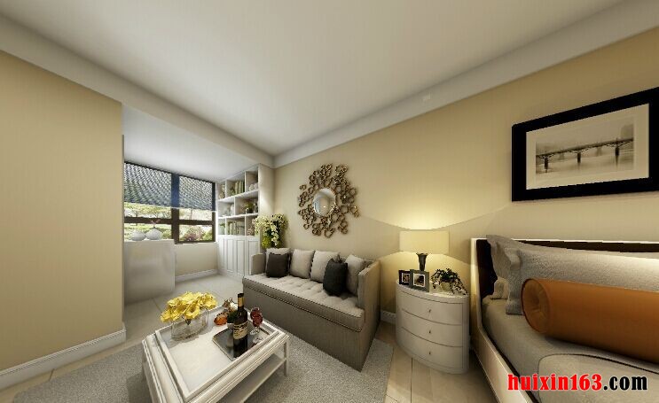 34平米的一居室,采用现代简约的装修风格,整个空间的面积并不是很大,但为了满足各功能空间的特点,将其设计为一体,所展现出来的效果也显得比较别致,对于小居室而言,大量的留白处理,更能营造出一种宽敞的感觉,平顶式的石膏板吊顶,没有繁琐复杂的吊灯安装约束,让空间少了一份笨重,多出一份轻巧与灵活,客厅沙发的正对面就是餐厅的设计,区域划分很合理,餐厅背景墙隔板的设计,适当的添加一些装饰品,修饰空间的同时也增加了空间的收纳功能,在卧室床的正对面就是电视的摆放,一举多用,沙发背景墙的造型设计也有着很大的看点。