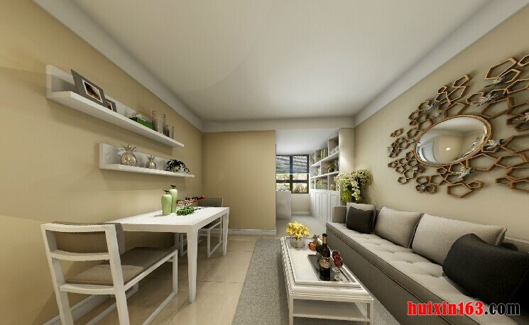 34平米的一居室,采用现代简约的装修风格,整个空间的面积并不是很大,但为了满足各功能空间的特点,将其设计为一体,所展现出来的效果也显得比较别致,对于小居室而言,大量的留白处理,更能营造出一种宽敞的感觉,平顶式的石膏板吊顶,没有繁琐复杂的吊灯安装约束,让空间少了一份笨重,多出一份轻巧与灵活,客厅沙发的正对面就是餐厅的设计,区域划分很合理,餐厅背景墙隔板的设计,适当的添加一些装饰品,修饰空间的同时也增加了空间的收纳功能,在卧室床的正对面就是电视的摆放,一举多用,沙发背景墙的造型设计也有着很大的看点。