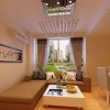 本案例采用的是现代简约的装修风格,在本案例的设计当中,整体墙面都是使用的乳胶漆,暖色系的色彩给人营造出一种浪漫、温馨的感觉,例如客厅的装饰布置,采用平顶式的石膏板吊顶,搭配上一盏亮丽的水晶吊灯,让空间显得比较舒适雅致,实木个性的沙发布艺,与整个空间的色彩相互协调统一,白色茶几添加,鲜明的色彩反差,正好起到一个点缀的效果,沙发背景墙后落地窗的设计,室外一片盎然生机,正好与室内起到一个相互借景的效果,一旁就是餐厅的设计,所占据的空间面积并不是很大,但却显得比较时尚,浪漫,餐桌上高脚杯的摆放,营造一个甜蜜的二人世界也是唾手可得。