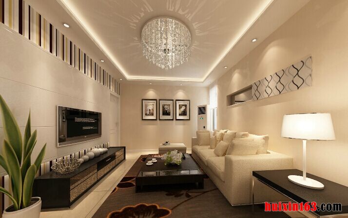 85平米的三居室,采用现代简约的装修风格,在本案例的设计当中,大量的留白处理,营造一个轻松惬意的居室环境,并且还将空间打造得比较时尚雅致,客厅采用平顶式的石膏板吊顶,搭配上一盏亮丽的水晶吊灯,吊顶夹层内灯带的使用,通过灯光的营造,让空间显得比较明亮透彻,墙面四周射灯的安装,让居室也展现出一种个性,洁白的地砖与吊顶上下相互呼应,纯白色布艺的沙发添加,与整个空间的色彩相互协调统一,一张棕色的地毯铺设,鲜明的色彩反差,正好起到一个色彩点缀的效果,入户门的一侧就是餐厅的设计,空间显得比较空旷,但却不失时尚浪漫感。