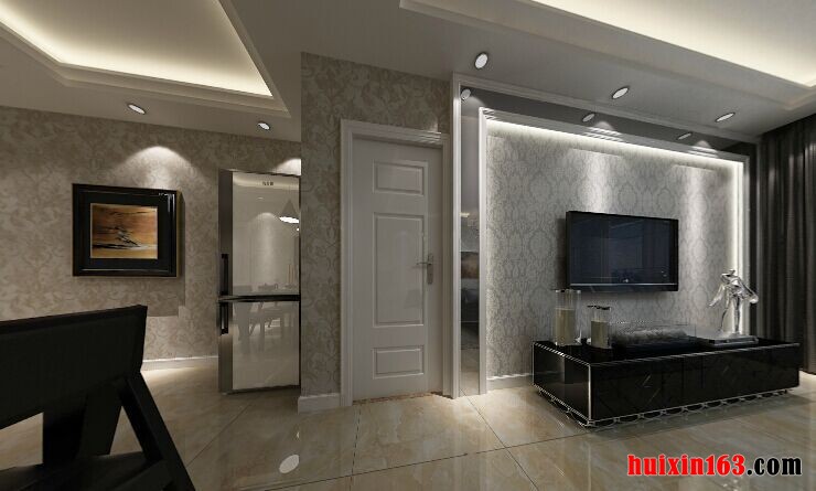 89平米的二居室,采用现代简约的装修风格,整个空间大量的留白处理,营造一个轻松惬意的居室环境,在客厅的装饰布置当中,采用平顶式的石膏板吊顶,背景色彩以白色为主,搭配上一盏亮丽的水晶吊灯,让空间的采光更加的明亮透彻,墙面四周射灯的安装,在昏暗的环境当中,正好营造出一种繁星点缀的效果,纯黑色布艺的沙发添加,与吊顶的色彩有着鲜明的反差,两者上下相互呼应,对局部更是营造出一种黑白搭配的经典造型,茶几上装饰花卉的添加摆放,也让居室展现出一种不一样的美,空间整体感觉显得比较个性别致,但却不张扬。