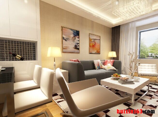 中兴小区-108平米三居室-现代简约装修效果图-客厅